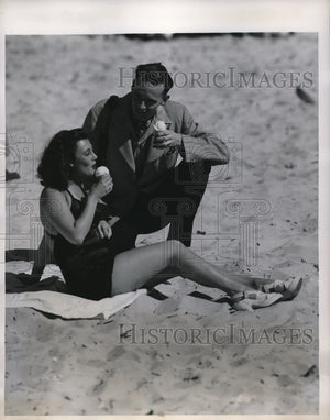 1947 Press Photo Corliis Colton Eats Ice Cream with a Young Man