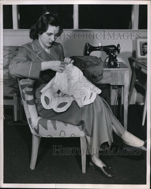 1952 Press Photo Sharon Keohnke repairing her cloyhing designs