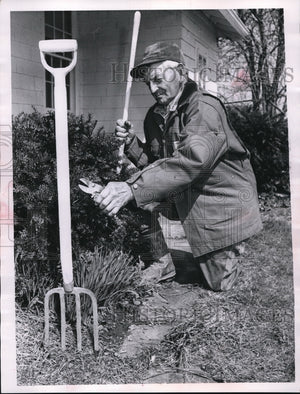 1962 Press Photo Henry Hippisley landscaping at his Cleveland home