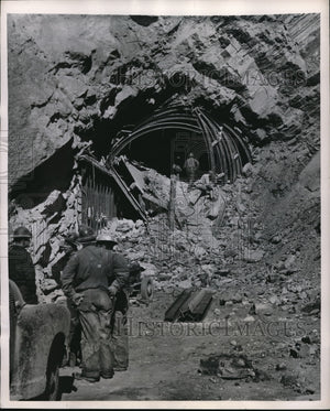 1949 Press Photo Cave In at Railroad Tunnel at Boysen Dam in Wyoming
