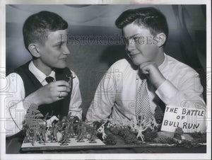 1961 Press Photo Joe Guzik John Grod with Battle of Bull Run Model
