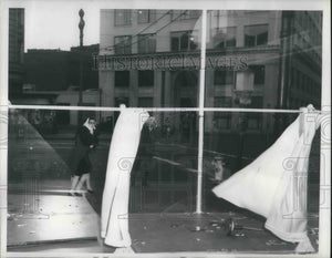 1943 Press PhotoResidents hang onto their hats as winds blow