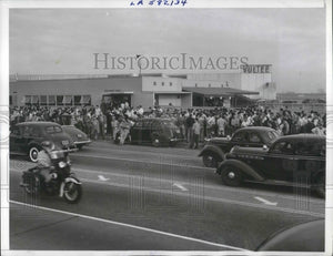 1940 Press Photo Workers outside the Vultee Airport plant at Downey, Cal strike