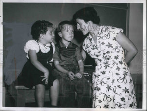 1955 Press Photo Hermine Mekertichian, teacher from Iran & US students