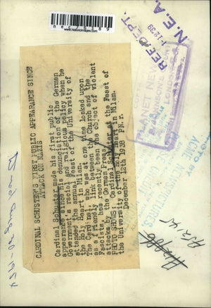 1939 Press Photo Cardinal Shuster at Feast of the Univeristy Holy Heart Milan