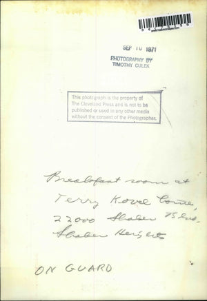 1971 Press Photo Terry Kovel Breakfast Room Indian Cut Out On Guard