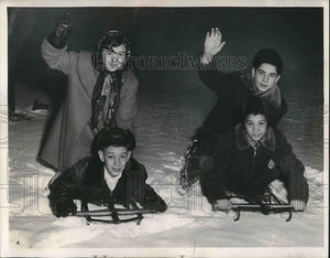 1954 Press Photo Billy & Jane Birch, John & Nick Soloman sledding