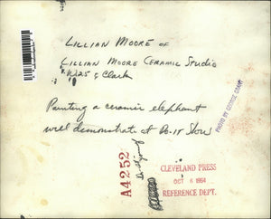 Lillian moore of the Lillian Moore Ceramic Studio, painting a ceramic elephant
