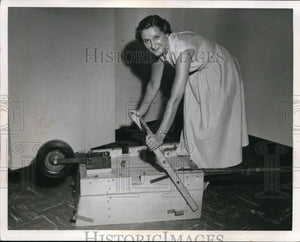 1954 Press Photo Lady demonstrating the self made wheel borrow