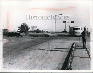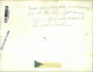 Press Photo Truck going Noah on Eddy rd. & Freeway pass-over then turns right