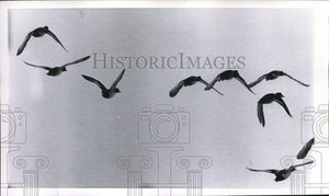 1961 Press Photo Golden Eye Ducks flying over Lake Erie during the cold spells