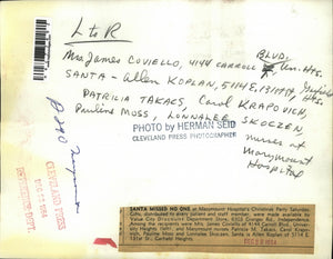 With Mrs. James Coviello, Santa- Allen Koplan, Patricia Takacs and Pauline Moss, Nurses at Marymount Hospital.