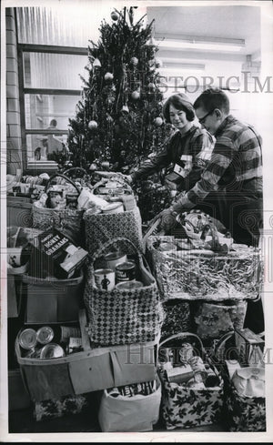 1964 Press Photo Kevin Purcell, Terri Wolverton with Christmas decorations