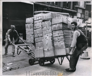 1959 Press Photo Cartmen in New York Citiy Garment District