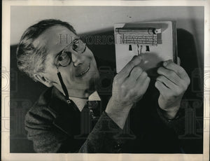 1940 Press Photo Russell Oakes Inventor Double Keyhole