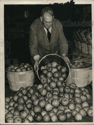 1941 Press Photo Ralph Hood , salesman at Greenhouse Veg Packing Co apples