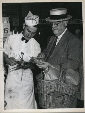 1938 Press Photo Judge Walter McMahon & clerk Ben J Susi at a store