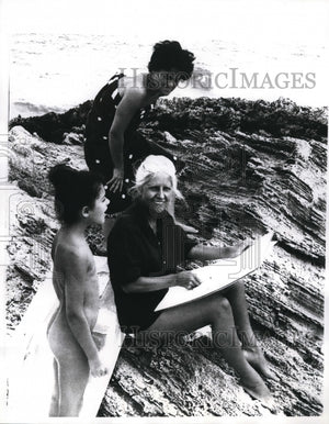 1970 Press Photo Painter Yvonne Motter and her Majorcan Models by the Ocean