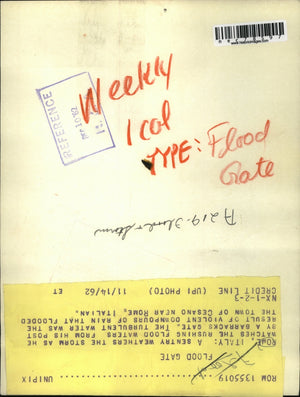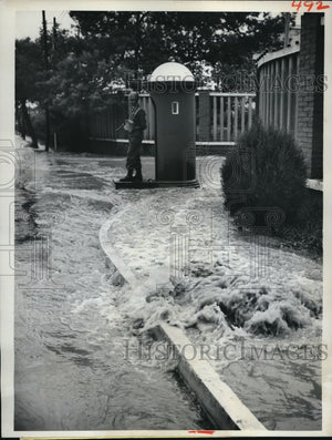 1962 Press Photo Sentry weathers the storm while watching the flood in Rome