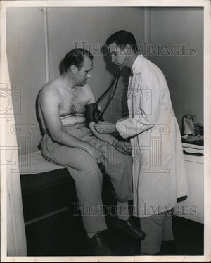 1954 Press Photo Dr William Moir with patient Peter Boruch for BP test