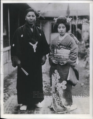 1944 Press Photo Japanese couple in their traditional wedding outfits