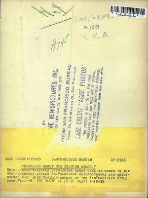 1936 Press Photo Model Wears Crownless Beret New Western Conceit