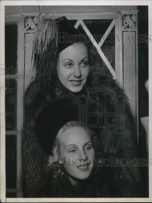 1937 Press Photo Models Wearing Harryson Black Velvet Toque with Two Styles