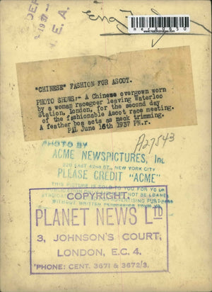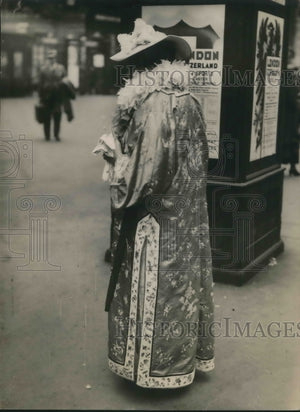1937 Press Photo Woman Wearing Chinese Overgown by Racegoer at Waterloo Station