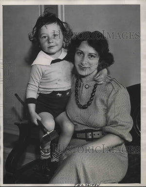 1934 Press Photo Jailed for a day for digging in the park, Mrs. Fela Bird & son