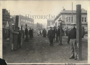 1933 Press Photo St Paul Armour Plant, strike pickets build barricade entrance