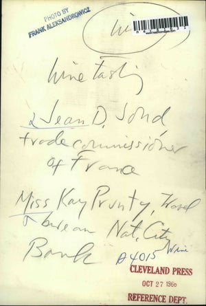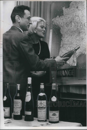 1966 Press Photo Wine tasting Jean D Jond of France & Kay Prunty