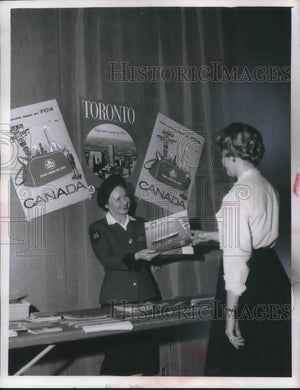 1961 Press Photo Halle's Travel Show & Mrs Hughes in Cleveland