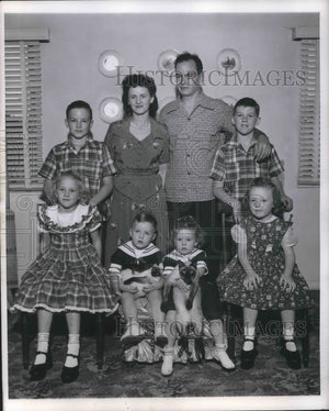 1950 Press Photo Man & wife & family of 6 children get orphan for 7 child