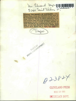 1961 Press Photo Mrs Edward Dapo with gifts after husbands funeral
