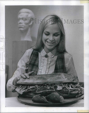 1970 Press Photo Vicki Beck of Kent State University Touches Ceramic Sandwich