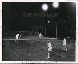 1955 Press Photo Meter Lights allow for night matches at Queens Park Tennis Club