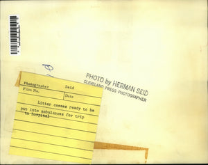 Press Photo Injured on Stretchers Ready to be Put into Ambulances