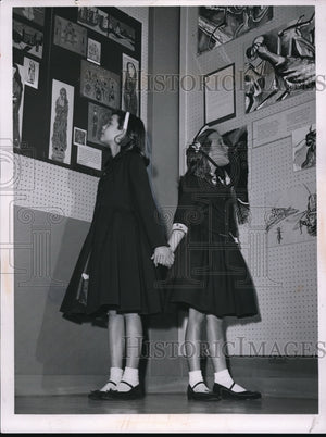 1956 Press Photo Emily Mirsky and Ann Cook Looking at Art