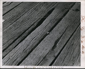 Press Photo Split & rotted boards at a camp need repair & replacement