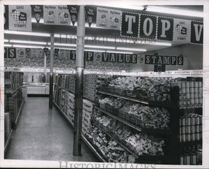 1955 Press Photo Stop N Shop grocer in Cleveland Ohio