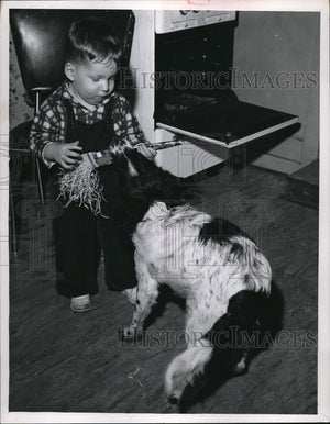 1957 Press Photo Clarence Hathaway of Stow Ohio & his pet dog