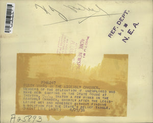 Members of the delegation of unemployed who have been camping in the State House at Trenton, N.J., snatch a few winks in the Assembly Chamber, shortly after the legislature met and recessed without finding a solution for the state;s relief tangle.