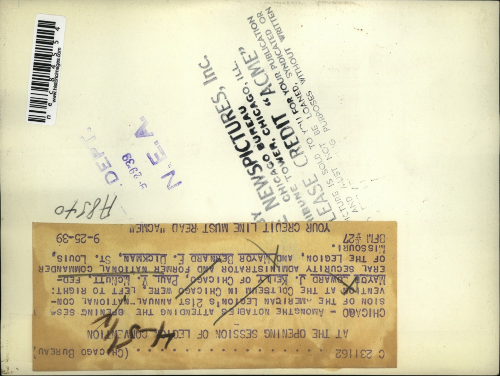 Among the notable attending the opening session if the American Legion's 21st annual national convention at the Coliseum in Chicago were, left to righ