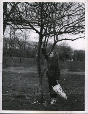 1957 Press Photo Lynn Popik age 9 with a fruit tree in Cleveland