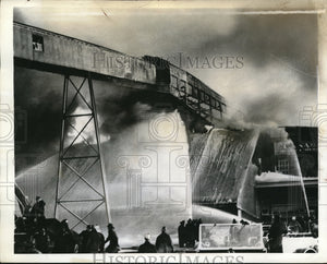 1943 Press Photo Montreal Canada firemen battle blaze at fertilizer plant
