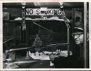 Press Photo Todd Martin N Olmstead bus driver in Ohio with Xmas decorations