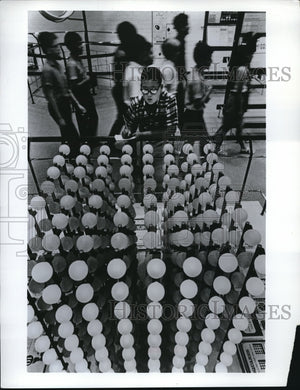 Press Photo A child at Light Cube exhibit at Calif Museim of Science & Industr