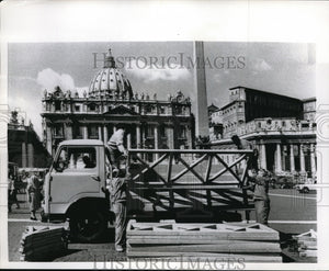 1965 Press Photo Rome Italy workers set fences for crowds at St Peter's Basicilca