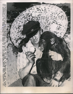 1956 Press Photo San Francisco zoo keeper Bill Wills & a chimp