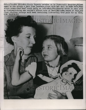 1951 Press Photo Gloria Kopecky watches daughter, Eileen, dying from leukemia